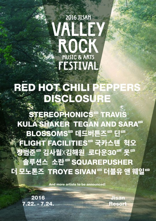 ‘2016 지산 밸리록 뮤직앤드아츠 페스티벌(이하 밸리록)’이 15일 오전 3차 아티스트 라인업을 발표했다.
