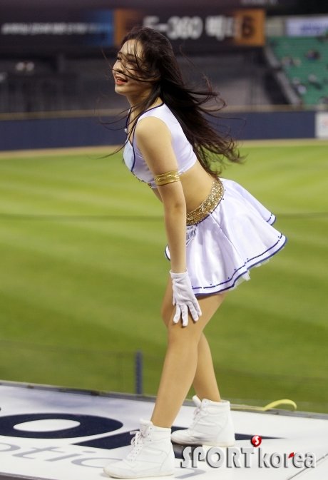 15일 오후 서울 잠실야구장에서 열린 `2016 프로야구` 두산 베어스 대 삼성 라이온즈 경기 이닝교체 타임을 이용해 삼성 치어리더가 멋진 공연을 펼치고 있다.
