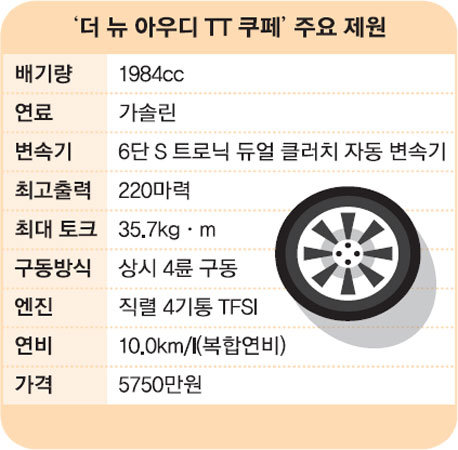 아우디의 콤팩트 스포츠카 TT가 새롭게 돌아왔다. 디자인은 여전히 한발 앞서나가는 미래적인 느낌을 준다. TT 쿠페에는 2.0l 가솔린 터보 220마력 엔진이 얹혔다. 우선 파워트레인이 얼마나 진화됐는지 궁금했다.