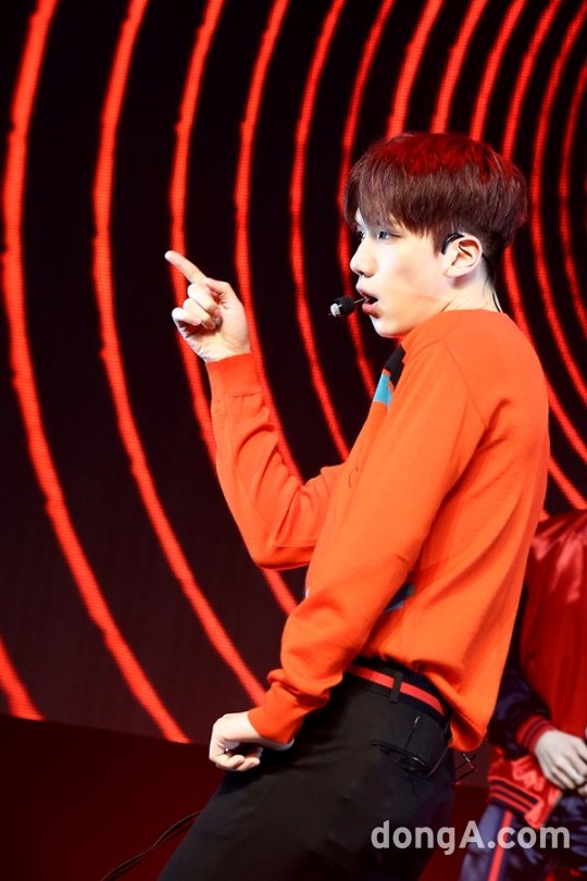 그룹 빅스가 19일 오후 서울 마포구 롯데카드 아트스페이스에서 열린 5번째 싱글앨범 ‘Zelos’ 쇼케이스에서 공연을 하고 있다.