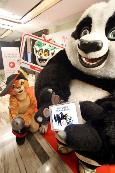 KT는 드림웍스애니메이션과 20일 서울 중구 그랜드앰버서더호텔에서 기자간담회를 열고 IPTV ‘올레tv’와 모바일TV ‘올레tv모바일’에서 실시간 ‘드림웍스 채널’을 5월3일부터 단독 제공한다고 밝혔다. 드림웍스는 ‘슈렉’과 ‘쿵푸팬더’, ‘드래곤 길들이기’, ‘장화 신은 고양이’ 등으로 유명한 애니메이션 제작사다. 극장판 뿐 아니라 오리지널 TV 시리즈 제작을 통해 홈 시장도 공략하고 있다.