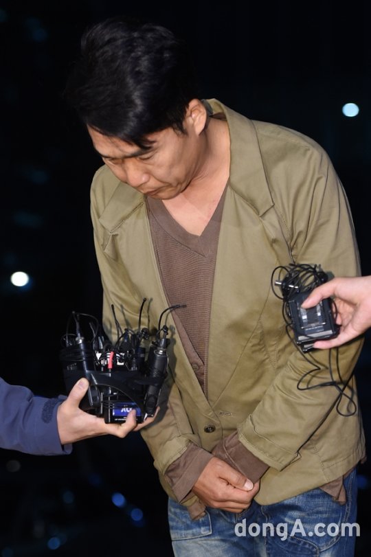 개그맨 이창명이 21일 오후 서울 영등포구 영등포경찰서에 음주운전 혐의 조사를 위해 출두하고 있다.