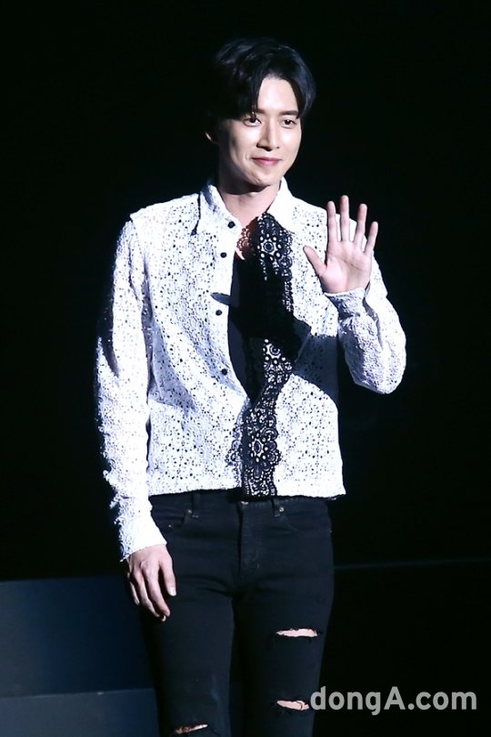 배우 박해진이 23일 오후 서울 송파구 올림픽공원 핸드볼경기장에서 열린 데뷔10주년 팬미팅에 참석해 인사를 하고 있다.