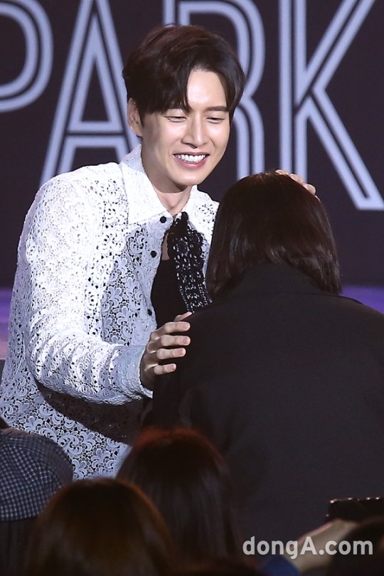 배우 박해진이 23일 오후 서울 송파구 올림픽공원 핸드볼경기장에서 열린 데뷔10주년 팬미팅에 참석해 팬과의 인터뷰를 하고 있다.