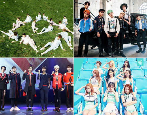 그룹 세븐틴-방탄소년단-트와이스-빅스 (왼쪽상단부터 시계방향으로). 사진|플레디스·빅히트엔터테인먼트·JYP엔터테인먼트·동아닷컴DB