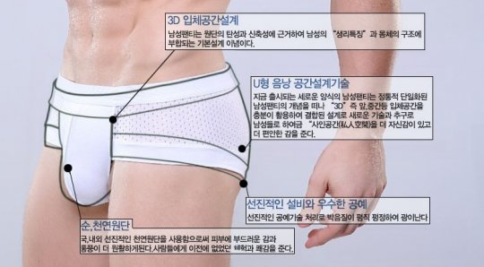신체구조상 남성의 팬티야말로 입체적 디자인과 세심한 위생 기능이 요구되는 이유는 그래서다.