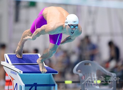 26일 광주 남부대 국제수영장에서 스포츠동아, 동아일보, 대한수영연맹이 공동 주최하고 광주광역시가 후원하는 ‘제88회 동아수영대회 및 2016 리우데자네이루올림픽 국가대표 2차 선발전’이 열렸다. 박태환이 남자 일반부 자유형 200m 결승에서 힘차게 스타트를 하고 있다. 광주|김진환 기자 kwangshin00@donga.com