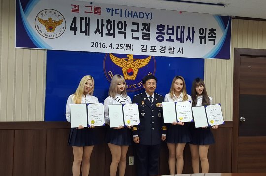 이봉행 서장은 “4대 사회악 근절 홍보대사로 위촉된 걸그룹 ‘하디’와 함께 시민들에게 보다 친근하게 다가가고 소통하는 홍보활동을 지속적으로 추진할 계획이며, 활발한 활동을 기대한다”고 말했다.