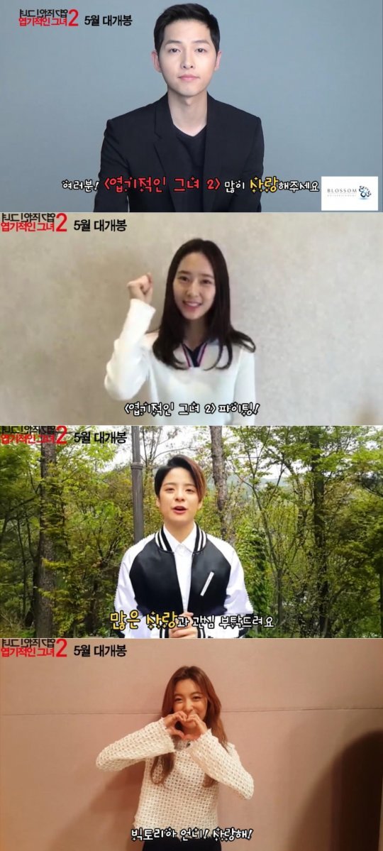 송중기와 f(x) 멤버들의 응원 영상을 공개하며 기대감을 더하는 영화 ‘엽기적인 그녀 2’는 오는 5월 개봉한다.