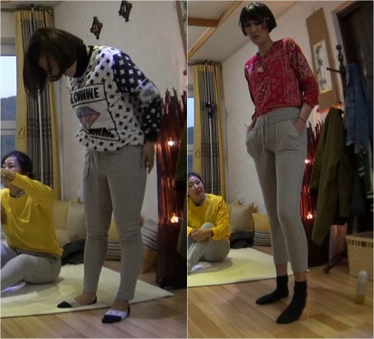 김숙은 당당히 “미디움이야”라며 위풍당당한 모습으로 M사이즈 바지를 선택했다. 그러나 바지를 입은 모습은 그야말로 충격이었다. 트레이닝 복이 김숙의 탄탄한 다리 라인을 쫀쫀하게 감싸며 순식간에 쫄바지가 되어 버린 것이다. 김숙의 터질 듯 한 쫄바지 패션은 시선을 강탈했다. 김숙에 이어 문제의 M사이즈에 도전한 홍진경은“핏이 이게 뭐야”고 투덜거리다가도 제시의 “섹시하다”는 칭찬 한마디에 모델 포즈를 취했다. 홍진경은 길쭉하고 늘씬한 다리로 운동복을 단숨에 7부 바지로 만들어 김숙에게 굴욕을 안겼다.