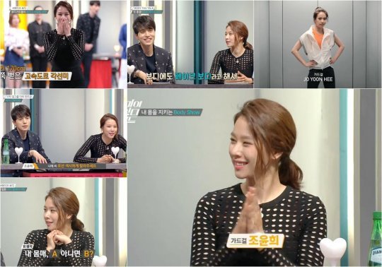 특히 조윤희는 이날 방송에서 명품 보디를 드러내 시선을 강탈했다. 몸 딱 맞는 블랙 시스루 드레스를 군살 없는 몸매와 쭉 뻗은 각선미로 완벽하게 소화했다. 100인과 함께 운동하는 코너에서는 굴욕 없는 파란색 레깅스의 트레이닝복 자태를 뽐내 ‘워너비 보디’의 소유자임을 다시 한 번 증명했다.