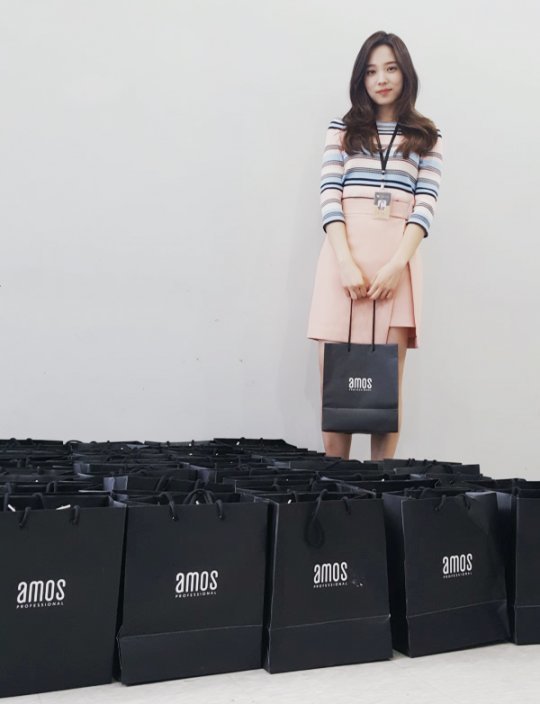 윤소희는 27일 ‘기억’의 촬영현장에서 힘든 스케줄을 소화하며 밤낮없이 고생하는 스태프들을 위해 자신이 모델로 활동 하고 있는 헤어 브랜드의 제품을 선물하며 고마움을 표현했다.