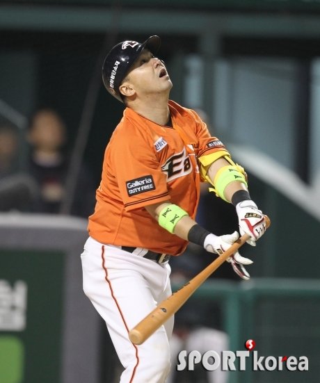 29일 오후 대전 한화생명 이글스파크에서 열린 `2016 프로야구` 한화 이글스 대 삼성 라이온즈의 경기 8회말 2사 1,2루에서 한화 차일목이 행운의 역전 적시타를 치고 있다.