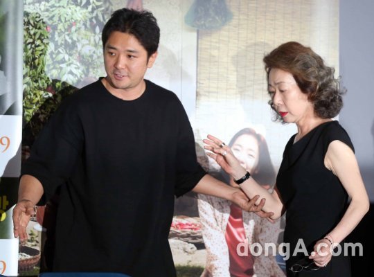 감독 창감독(왼쪽)과 배우 윤여정이 2일 오후 서울 성동구 왕십리 한 멀티플렉스에서 열린 영화 ‘계춘할망’ 언론시사회에 참석하고 있다.