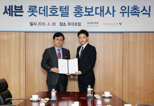 롯데호텔부산은 28일 서울 태평로 롯데호텔서울 신관 컨퍼런스룸에서 가수 세븐을 호텔 홍보모델로 위촉했다.(사진) 세븐은 1년간 호텔의 각종 인쇄물과 간행물, 홈페이지, SNS, 영상물 등을 통해 활약할 예정이다. 롯데호텔은 그동안 김수현, 이민호, 빅뱅 등의 한류 스타들을 홍보모델로 기용해 다양한 한류 관련 이벤트를 펼쳤다. 올해도 장근석, B.A.P, 강지환, 김정훈 등을 모델로 두고 한류 마케팅에 역점을 두고 있다.