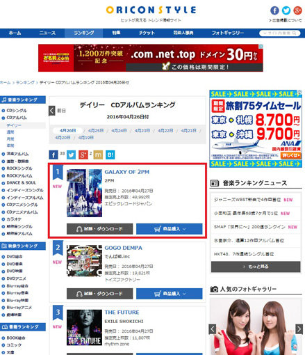 자체 최고 판매량도 경신했다. 3일 오리콘에 따르면 2PM이 4월27일 발표한 일본 5집 ‘갤럭시 오브 2PM’ 5월9일자 오리콘 주간 앨범차트 1위에 올랐다. ‘갤럭시 오브 2PM’ 판매량은 9만5871장. 이는 2011년 11월 발표한 첫 앨범 ‘리퍼블릭 오브 2PM’으로 기록한 기존 최고 판매량7만4000여장을 크게 웃도는 성적이다.