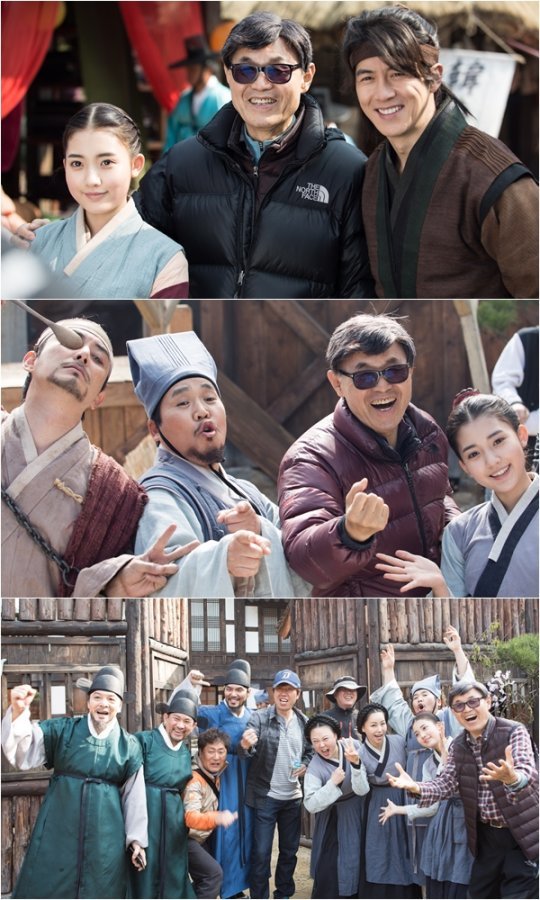 공개된 스틸에는 이병훈 감독부터 고수, 정다빈 외 많은 배우와 스태프가 하나 되어 촬영 인증샷을 남기고 있는 모습. 고수(윤태원 역)와 정다빈(소녀 옥녀 역)은 이병훈 감독과 함께 밝은 에너지를 내뿜고 있어 시선을 고정시킨다. 특히 세 사람은 가족 같은 모습이어서 촬영장 분위기가 얼마나 훈훈한지 예측하게 한다. 또한, 이세창(전우치 역), 정은표(지천득 역), 정다빈, 이병훈 감독은 유쾌한 에너지로 웃음을 자아낸다. 이세창은 숟가락으로 한쪽 눈을 가리곤 익살스러운 표정을 짓는가 하면, 정은표는 명불허전 최고의 코믹 감초 배우임을 입증 하듯 허공을 향해 사랑의 총알을 날리고 있어 폭소를 유발한다.