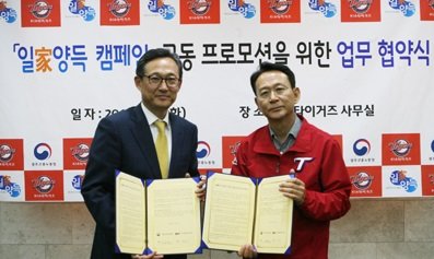 프로야구 KIA타이거즈와 광주지방고용노동청이 3일 오후 광주-기아 챔피언스 필드내 구단 사무실에서 ‘일가(家)양득 캠페인 프로모션’ 공동 추진을 위한 업무협약을 체결했다.