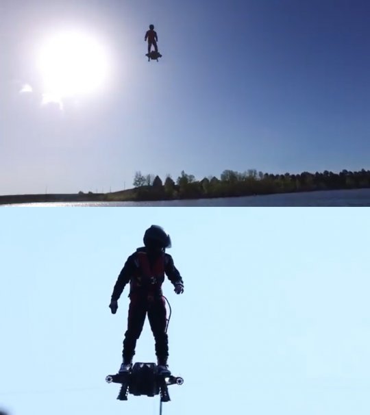 지난 3일 스포츠 장비업체 창업자인 프랭키 자파타(37)는 자신이 만든 프로토타입 호버보드를 타고 지상 50m 상공에서 2.2km를 날았다.