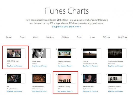 그룹 방탄소년단의 신곡 ‘불타오르네 (FIRE)’ 뮤직비디오가 3일 오후 10시 기준(한국 시간) 미국 아이튠즈 뮤직비디오 종합차트에서 1위를 차지했다.