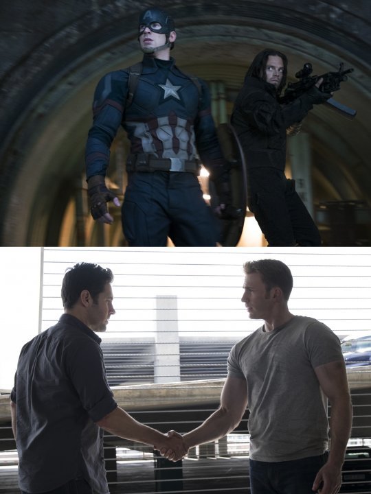 먼저 이 영화에서 ‘캡틴 아메리카/스티브 로저스(크리스 에반스)’와 ‘윈터 솔져/버키 반즈(세바스찬 스탠)’의 관계는 극의 가장 중요한 요소라 할 수 있다. ‘스티브 로저스’가 시대의 영웅 ‘캡틴 아메리카’가 되기 전부터 끈끈한 우정을 쌓아온 두 사람이었으나, 전편 ‘캡틴 아메리카: 윈터 솔져’에서 ‘버키’가 히드라에 의해 기억을 잃은 채 인간 병기 ‘윈터 솔져’로 거듭나며 대적하게 돼 많은 관객들의 안타까움을 자아냈다. 허나 이번 영화에서 ‘윈터 솔져’가 ‘버키 반즈’로서의 기억을 되찾으며 보여주는 서로를 향한 신뢰는 많은 관객들의 가슴에 진한 여운을 남겼다.