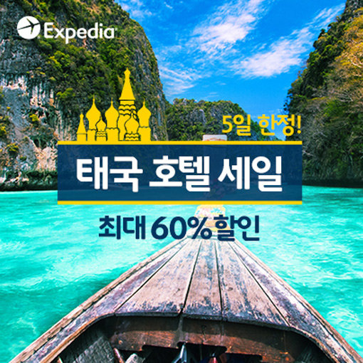 다국 온라인 여행사 익스피디아는 태국 유명 관광 지역 호텔을 최대 60%까지 할인하는 태국 호텔 할인 프로모션(사진)을 진행한다. 태국 호텔 117곳을 대상으로, 5월 15일까지 5일 간 예약할 수 있으며 여행 기간은 7월 31일까지다. 홈페이지, 모바일 어플리케이션에서 구입가능하며 자세한 소개는 홈페이지에서 확인할 수 있다.