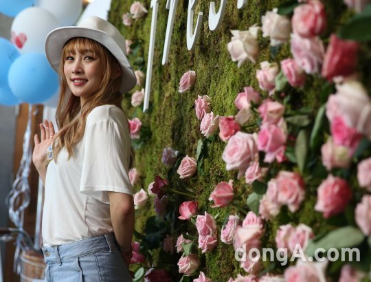 가수 니콜이 13일 오후 서울 강남구 도산대로 한 커피숍에서 열린 뷰티 행사에서 포토타임을 하고 있다.