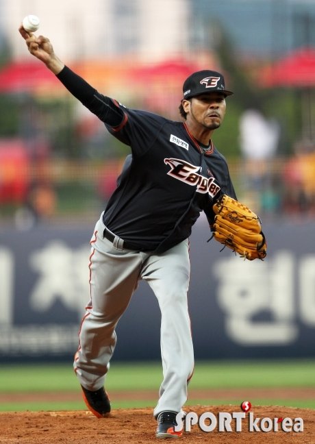 13일 오후 광주-기아 챔피언스 필드에서 열린 `2016 타이어뱅크 KBO 리그` 프로야구 KIA 타이거즈와 한화 이글스의 경기에서 한화 선발 로저스가 투구를 하고 있다.