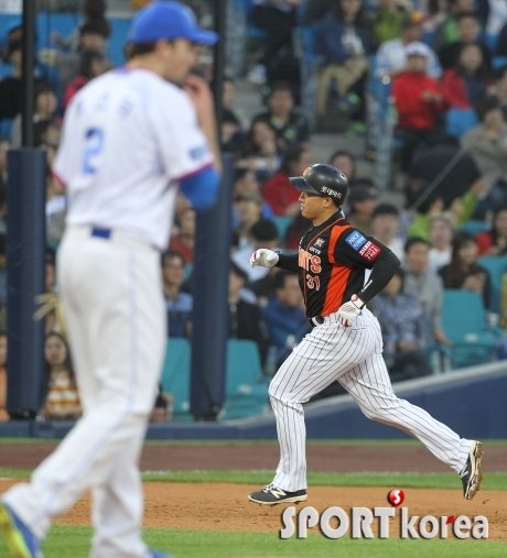 13일 오후 대구 삼성 라이온즈파크에서 열린 `2016 프로야구` 삼성 라이온즈 대 롯데 자이언츠 경기 2회초 1사 1루에서 롯데 손아섭이 투런홈런을 친 후 그라운드를 돌고 있다.