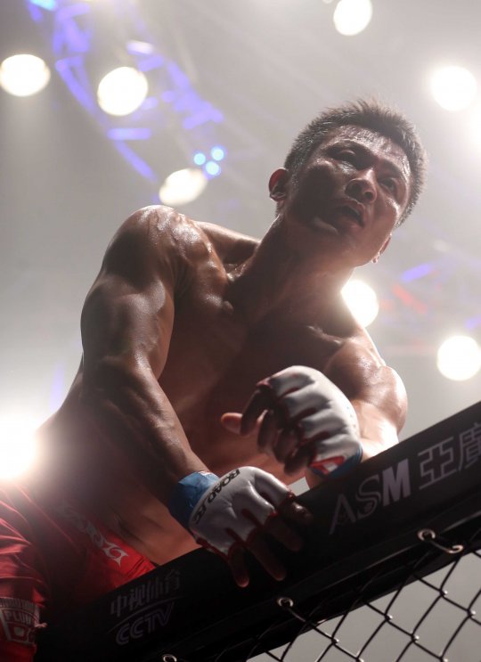 파이터 최영이 14일 오후 서울 중구 장충체육관에서 열린 'XIAOMI ROAD FC 031' 경기에서 용동식을 상대로 승리를 한 뒤 포효하고 있다.