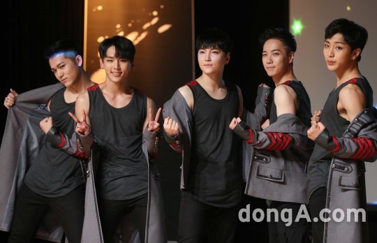 5인조 보이그룹 비아이지가 16일 오전 서울 강남구 일지아트홀에서 열린 첫 미니앨범 '아프로디테(APHRODITE)' 쇼케이스에서 포토타임을 하고 있다.