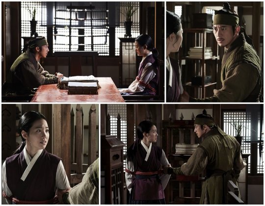 공개된 사진에서는 심각하게 마주하고 있는 옥녀와 태원 두 사람이 앉아있다. 밝지 않은 조명으로 미루어 짐작컨대 비밀스러운 얘기를 나누는 것처럼 보인다. 포승줄에 묶인 옥녀와 안타까움에 묶인 태원. 태원은 묻고 싶은게 많지만 흥분을 애써 억누르며 묵직하게 옥녀를 응시하고 있고, 옥녀는 일부러 외면이라도 하는 듯 눈길을 피하고 있다. 어떠한 상황이 펼쳐졌는지, 급박한 상황전개 뒤로 옥녀에게 무언가 갈구하는 것 같은 안타까운 눈빛의 태원과 금방이라도 눈물을 터뜨릴 것 같은 옥녀 두 주인공의 모습은 그녀의 팔을 꽉 잡고 놓지 않으려는 태원의 손만큼이나 애절하게 느껴진다.