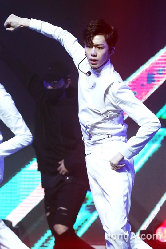 그룹 몬스타엑스가 18일 오후 서울 광진구 예스24 라이브홀에서 열린 3번째 미니앨범 'THE CLAN Part.1 LOST‘ 쇼케이스에서 공연을 하고 있다.