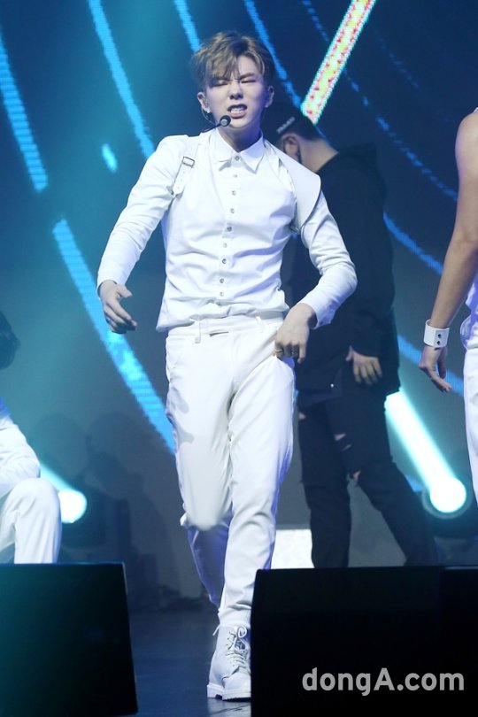 그룹 몬스타엑스가 18일 오후 서울 광진구 예스24 라이브홀에서 열린 3번째 미니앨범 'THE CLAN Part.1 LOST‘ 쇼케이스에서 공연을 하고 있다.