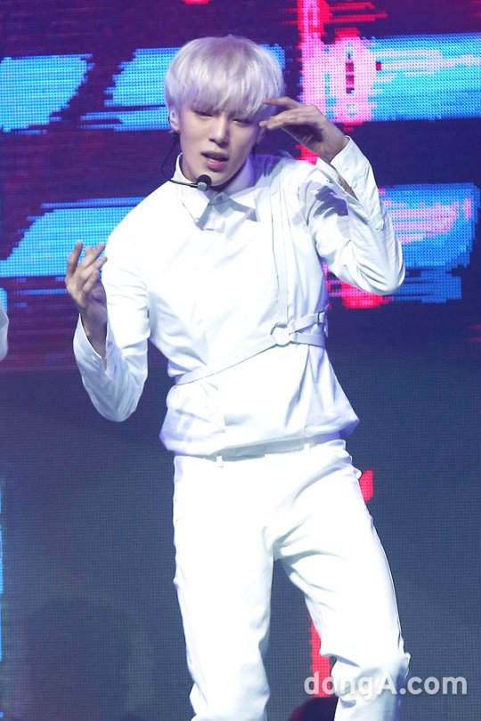 그룹 몬스타엑스가 18일 오후 서울 광진구 예스24 라이브홀에서 열린 3번째 미니앨범 'THE CLAN Part.1 LOST‘ 쇼케이스에서 공연을 하고 있다.