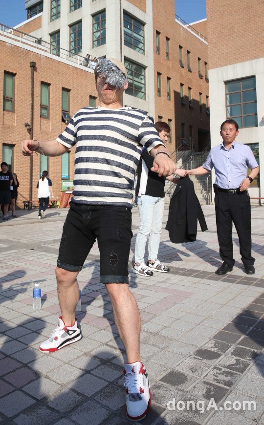 개그맨 양세찬이 19일 오후 경기 용인 수지구 단국대학교 캠퍼스에서 열린 채널A '오늘부터 대학생' 현장공개에서 제기를 차고 있다.