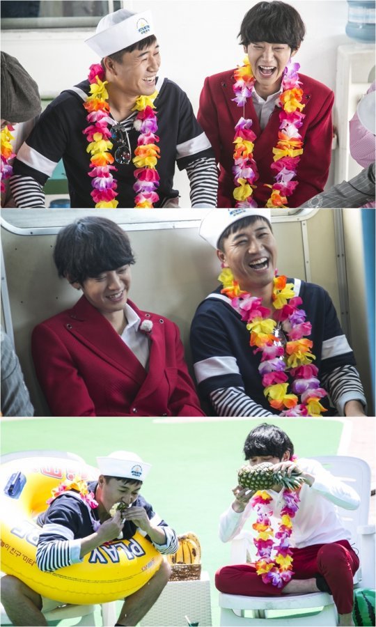 공개된 스틸에는 김종민과 정준영이 나란히 앉아 함박웃음을 짓고 있는 모습이다. 서해로 크루즈 여행을 떠난 이들은 환영의 꽃 목걸이까지 걸고 행복한 듯 활짝 웃음꽃을 피우고 있어 보는 이들의 미소를 유발한다.