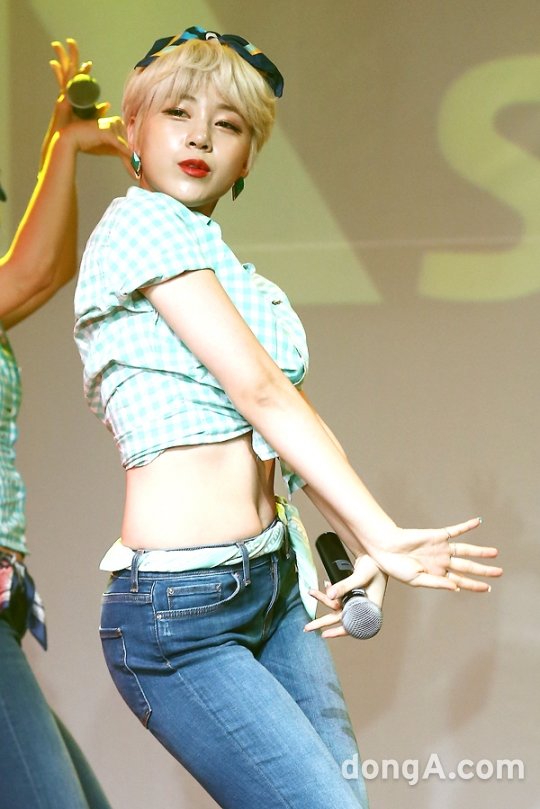 걸그룹 타히티가 23일 오전 서울 마포구 하나투어브이홀에서 열린 새 싱글앨범 ‘알쏭달쏭’ 쇼케이스에 참석해 공연을 하고 있다.