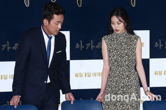 배우 하정우(왼쪽), 김민희가 25일 오후 서울 성동구 왕십리 CGV에서 열린 영화 ‘아가씨’ 언론시사회에 참석하고 있다.