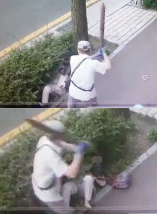 지난 25일 부산 동래구 명륜동의 한 인도에서 김모(52)씨가 가로수 지지대를 뽑아 지나가던 78세 정모 할머니의 얼굴과 몸을 가격한 뒤, 횡단보도에서 22살 서모 여인의 머리에 각목을 휘둘렀다. 김씨의 무자비한 폭행 장면은 CCTV에 고스란히 포착됐다.