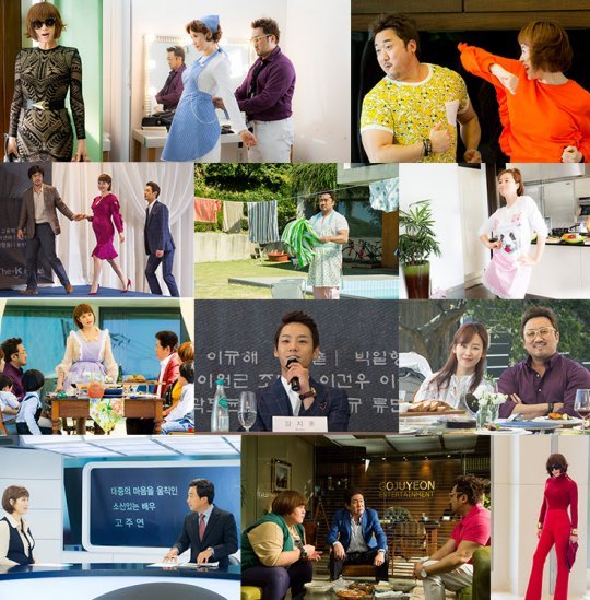 ‘주연’의 평생지기 절친이자 해외파 스타일리스트 ‘평구’로 등장하는 마동석의 모습이 담긴 스틸 또한 시선강탈의 저력을 발휘한다. 원색 프린트가 가득한 옷을 입고 김혜수와 장난치는 모습과 팔뚝 근육을 무색하게 만드는 파스텔톤 앞치마를 두른 채 빨래를 걷는 모습은 ‘마요미’스러운 매력을 한껏 보여준다.