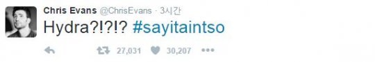 한편, 크리스 에반스는 75주년을 맞아 발매된 ‘캡틴 아메리카’ 코믹북에서 캡틴 아메리카가 사실 쉴드의 숙적인 하이드라의 스파이였다는 사실이 공개되면서 충격에 빠졌다.
