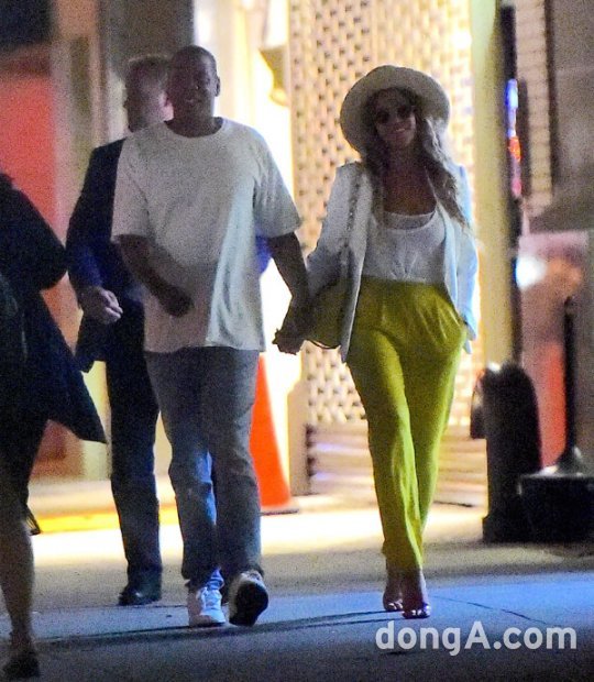 스플래시닷컴은 27일(현지시각) 뉴욕의 한 거리에서 로맨틱한 심야데이트 중인 비욘세와 제이지의 모습을 공개했다.