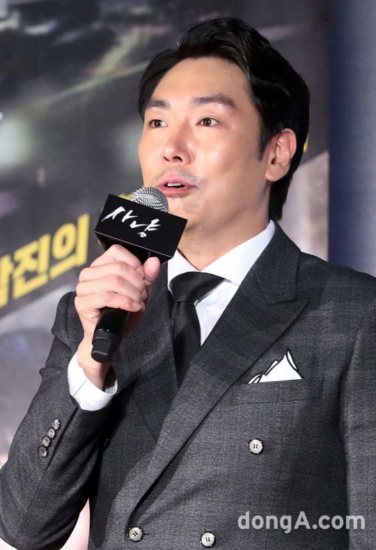배우 조진웅이 30일 오전 서울 광진구 한 멀티플렉스관에서 열린 영화 '사냥' 제작보고회에 참석하고 있다.