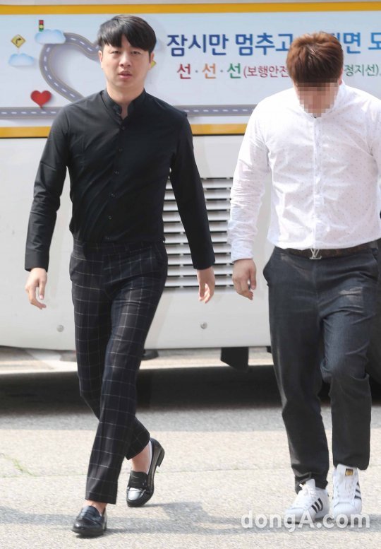 성폭행 혐의를 받고 있는 개그맨 유상무가 31일 오전 서울 강남경찰서에 피의자 신분으로 출석하고 있다