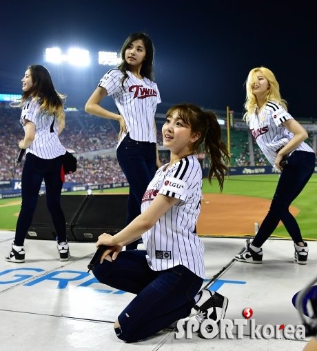 31일 오후 서울 잠실야구장에서 열린 `2016 프로야구` LG 트윈스 대 KIA 타이거즈 경기 이닝교체타임을 이용해 걸그룹 트와이스가 멋진 공연을 선사하고 있다.