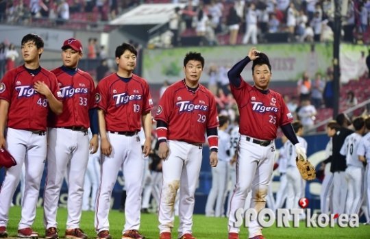 31일 오후 서울 잠실야구장에서 `2016 프로야구` LG 트윈스 대 KIA 타이거즈 경기가 열려 LG와 KIA가 연장 12회 혈투 끝에 6대 6으로 무승부를 기록했다. 경기종료 후 KIA 선수들이 그라운드를 빠져 나가고 있다.