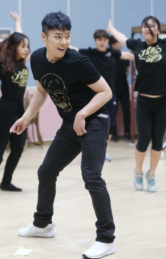 가수 겸 뮤지컬 배우 휘성이 1일 오후 서울 종로구 아리온 연습실에서 열린 뮤지컬 올슉업 연습현장 공개에서 하이라이트를 시연하고 있다.