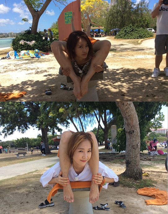 김지민과 박소영은 다른 사람의 다리를 어깨에 올린 뒤 정면 각도로 사진을 찍어 묘기 요가를 연상케 한다. 특히 고난이도의 자세 연출 후 여유 있는 표정을 지어 웃음을 자아낸다.