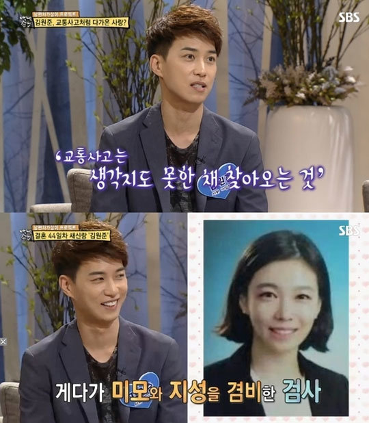 김원준은 아내와의 첫 만남에 대해 “첫 교통사고처럼 갑자기 내게 다가왔다”며 “교통사고가 예고하고 나는 게 아니지 않냐 생각도 못했는데 이렇게 좋은 일이 생겼다”고 설명했다.